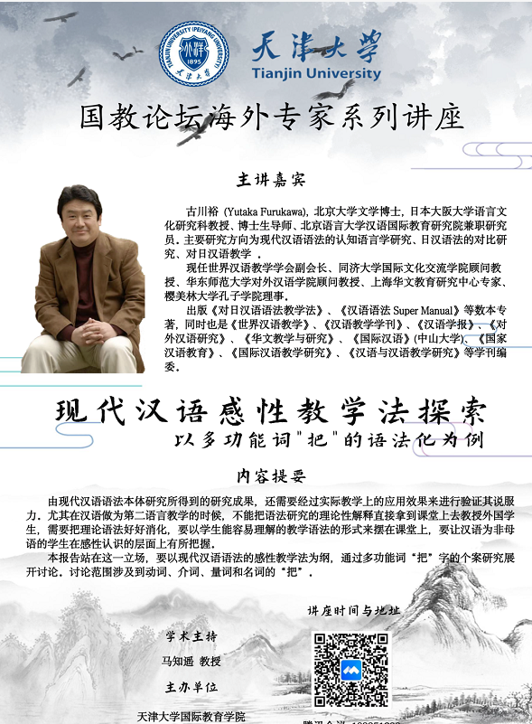 2021年3月13日10:00—古川裕教授:现代汉语感性教学法探索—以多功能词“把”的语法化为例—天津大学国际教育学院主办