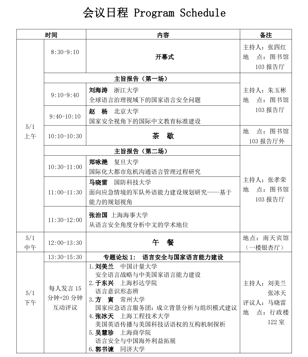 合肥工业大学外国语学院定于2021年4月30日至5月2日在安徽宣城市合肥工业大学宣城校区举办第二届全球语言治理论坛,论坛主题为“国家语言安全能力建设”。受疫情影响,本次论坛安徽省外参会人数将控制在50人以内。会议免收会务费,除受邀主旨报告专家外,参会者差旅食宿费用自理。