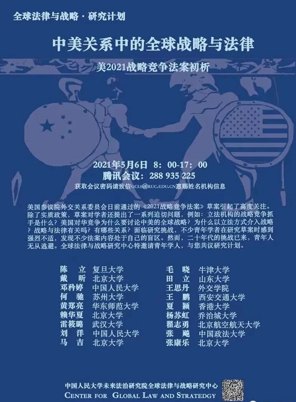 2021/05/06 8:00—陈立教授、戴昕教授、邓矜婷教授等:中美关系中的全球战略与法律