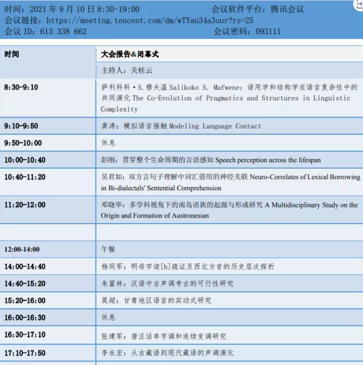 2021年9月10日——Salikoko S.Mufwene教授、龚涛教授、彭刚教授等:第12届演化语言学国际研讨会