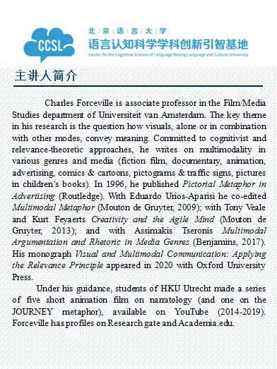 主 讲 人: Charles Forceville 教授(多模态隐喻国际专家)