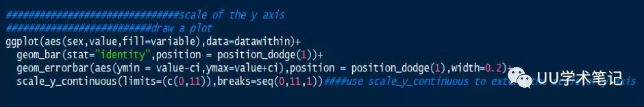 ps: ggplot2中加入scale_y_continuous命令,limits参数控制y轴的长度范围,breaks参数控制y轴间隔)