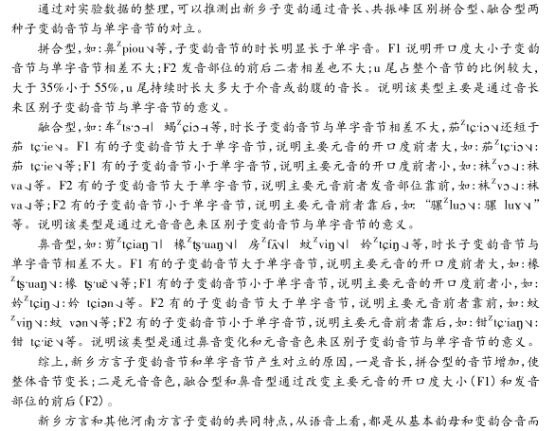2.2 单字音节和子变韵音节的音长和共振峰 音长是指整个音节、擦音声母、介音、韵腹