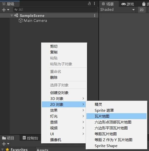 首先,我们要在游戏中创建一个2D对象:瓦片地图(TileMap)