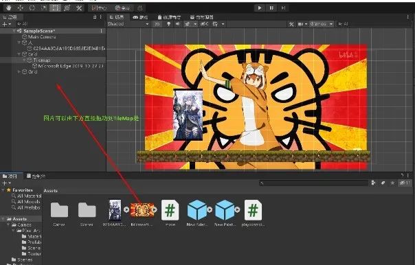 如果只是需要图片当作游戏背景,则可以直接鼠标拖动图片到TileMap对象处。