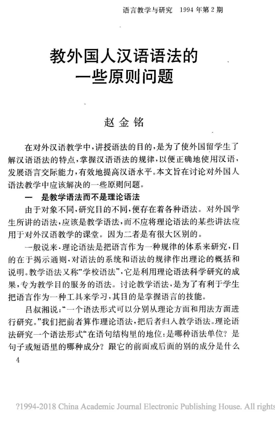 赵金铭 | 教外国人汉语语法的一些原则问题(1994)