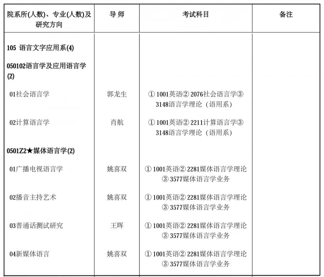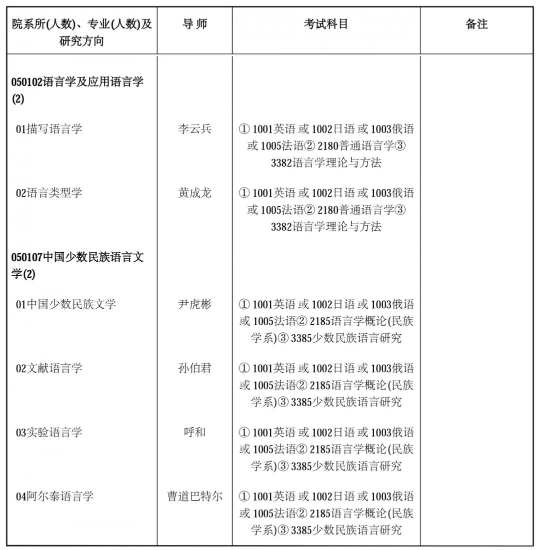 语言学系、应用语言学系、民族学系初试时间:2020年3月21日-3月23日