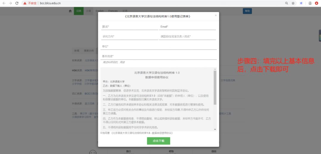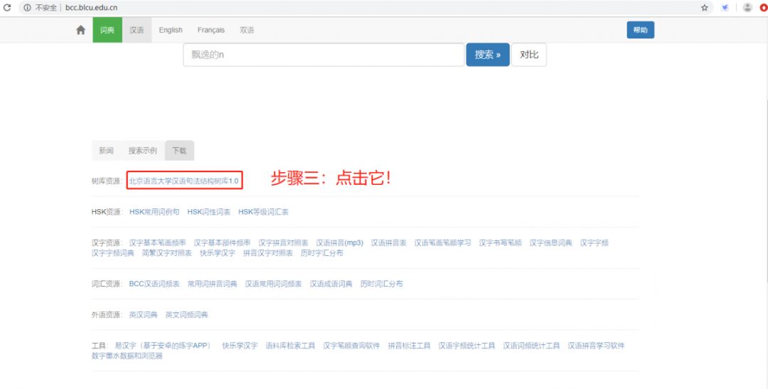 第三步:点击“北京语言大学汉语句法树库1.0”