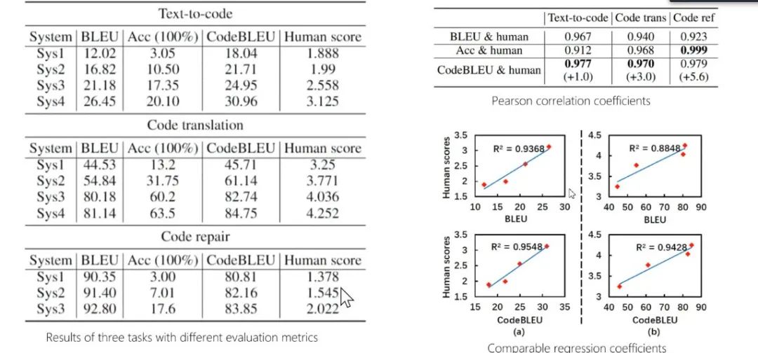 代码的评测需要考虑语法和语义问题,周明表示,CodeBLEU 评估机制融合了 N-Gram AST 和 Semantic Dataflow 及其不同权值组合进行评估,相关度测试表明,CodeBLEU性能更好。