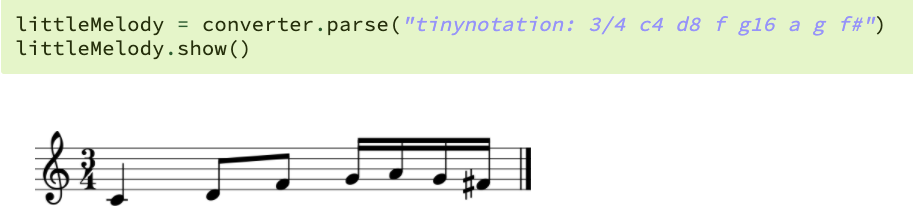 会被标注为音符"3/4 c4 d8 f g16 a g f#", 然后传递给模型。