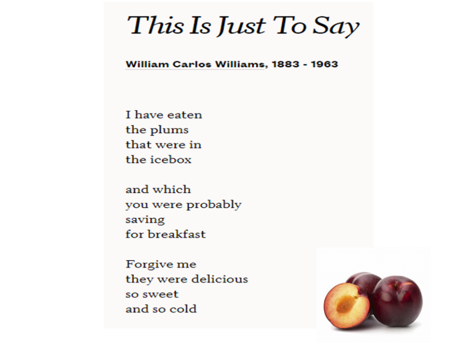 Field: A (husband) has eaten the plums, which might have been saved for breakfast by B (wife). Then, A asks B for forgiveness.