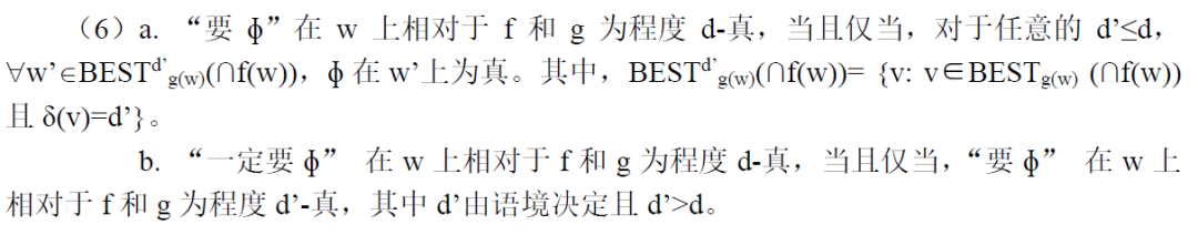 也就是说,修饰词“一定”的作用就是提高情态词的精确性程度,使整个句子的意义更接近语义真。
