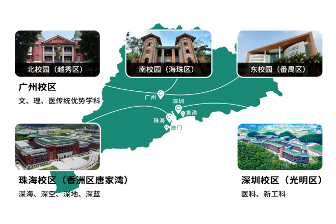 中山大学由孙中山先生创办,有着一百多年办学传统。作为中国教育部直属高校,通过部省共建,中山大学已经成为一所国内一流、国际知名的现代综合性大学。现由三个校区(广州校区、珠海校区、深圳校区)、五个校园及十家附属医院组成。中山大学正在向世界一流大学迈进,努力成为全球学术重镇。