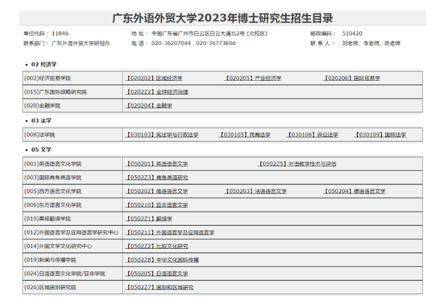 (一)招生专业、拟招生人数详见《广东外语外贸大学2023年博士研究生招生专业目录》。招生专业目录中公布的各专业拟招生人数包含硕博连读和“申请—考核”制人数,最终招生人数以教育部下达的招生人数为准,可能会有调整。