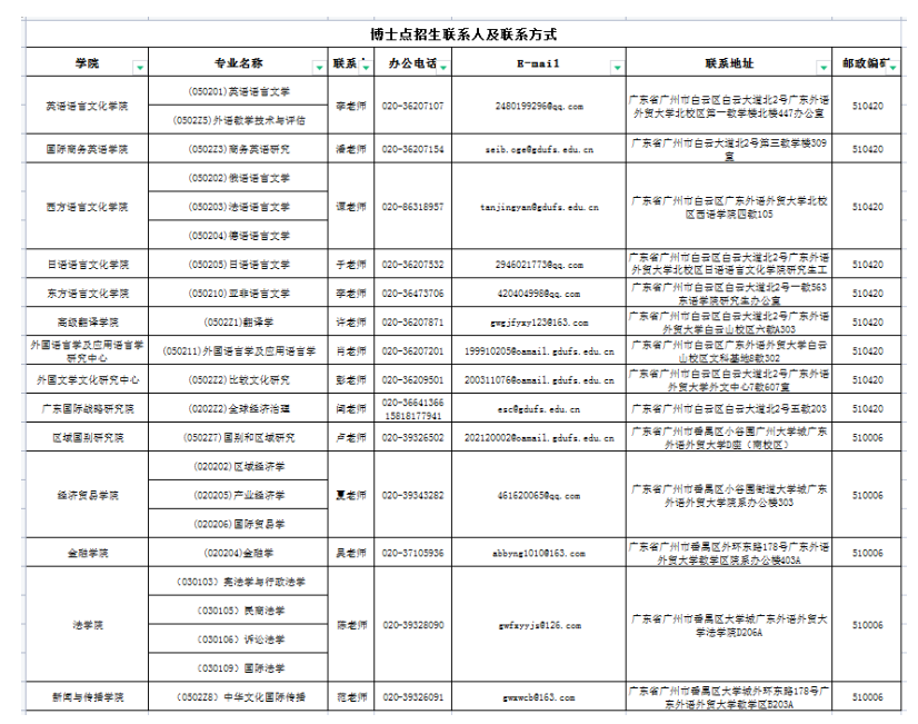 地址:广州市白云大道北2号广东外语外贸大学研究生院招生办