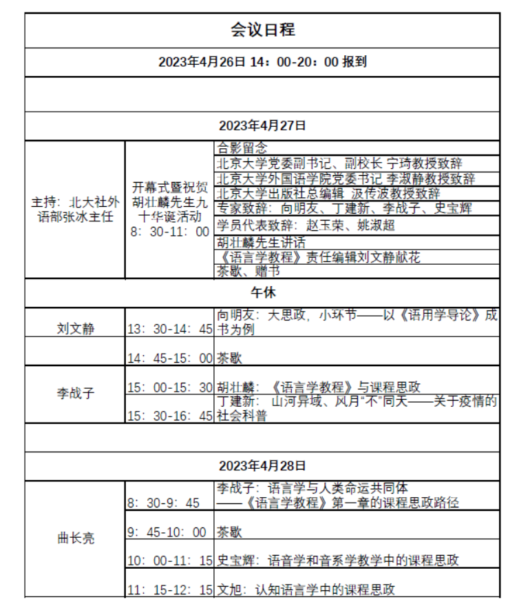 为贯彻教育部《高等学校课程思政建设指导纲要》文件精神,助力高校院系把握语言学课程思政的重点、方法和路径,搭建广大语言学教师沟通交流的平台,由北京大学出版社主办,北京大学外国语学院协办的“博雅大学堂——第十一届全国高校语言学学术研讨会”将于2023年4月26—28日(为期一天半)在北京召开。