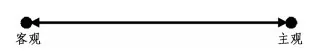 综上所述,现实位移事件总体上是客观的,但也带有一定的主观性,而非现实位移事件总体上是主观的,但也具有一定的客观性。但需要说明的是,现实位移事件和非现实位移事件所具有的主观性和客观性不是绝对的,而是相对的,是有强弱之分的。换言之,现实位移事件具有强客观性和弱主观性,而非现实位移事件具有强主观性和弱客观性。由此可见,现实位移事件和非现实位移事件所呈现出的不同程度的主观性和客观性形成一种相对性连续统。这一主—客观相对性连续统可以参照如图1所示的主—客观性相对关系连续统。