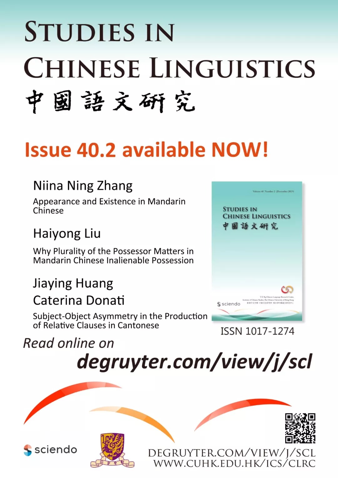 Studies in Chinese Linguistics (SCL) 40.2《中国语文研究》第40卷第2期