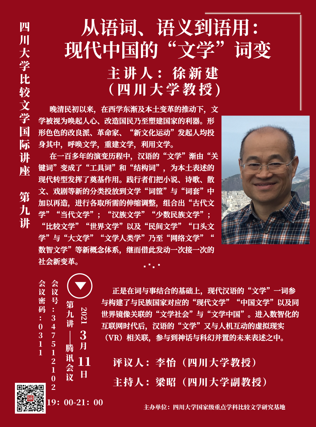 徐新建教授主讲 “从语词、语义到语用:现代中国的‘文学’词变”