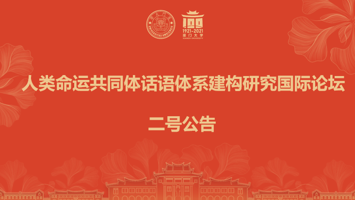 为庆祝厦门大学建校100周年,促进世界⼈⽂交流互鉴,由厦门⼤学主办、厦门⼤学外⽂学院所承办的“人类命运共同体话语体系建构研究国际论坛”将于2021年4⽉2⽇-5⽇在厦门隆重举行。