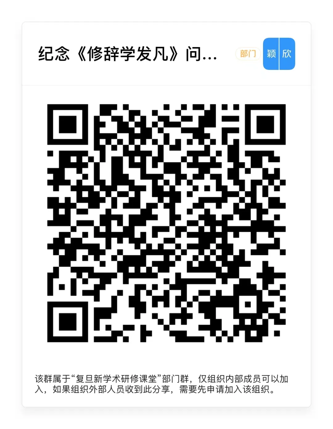 11月26日,复旦新学术发布了“纪念《修辞学发凡》问世90周年暨第12届‘望道修辞学论坛’学术研讨会”的活动预告后,陆续有老师来询问观看研讨会的方式。为方便老师们收看,复旦新学术将会转播此次活动。观看方式已经在本篇推文“6.会务安排”处进行更新,敬请有兴趣的老师和读者们关