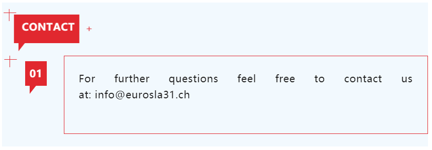 All you need to know about Eurosla 31 will be published on this website as soon as possible. For the time being, please note some important dates: