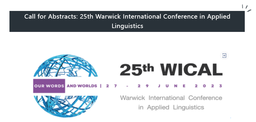The 25th Warwick International Conference in Applied Linguistics will be held in a "hybrid" mode from June 27th to 29th, 2023, that is, a conference mode combining online and offline. The deadline for submission is April 10, 2023. The conference will be held at the University of Warwick, UK (the specific location will be notified later). Warwick International Conference in Applied Linguistics (WICAL) has been successfully held for 24 sessions so far. WICAL is an interdisciplinary conference, organized by students for students, and is a successful tradition at the University of Warwick’s Applied Linguistics Department. Each year, we host talks and practical workshops by renowned scholars, and give a platform for undergraduates and postgraduates to showcase their research. We aim to give young scholars the opportunity to meet and learn from academics and peers from different disciplines, universities, and countries.