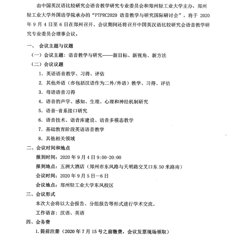PTPRC2020语音教学与研究国际研讨会·第一号通知