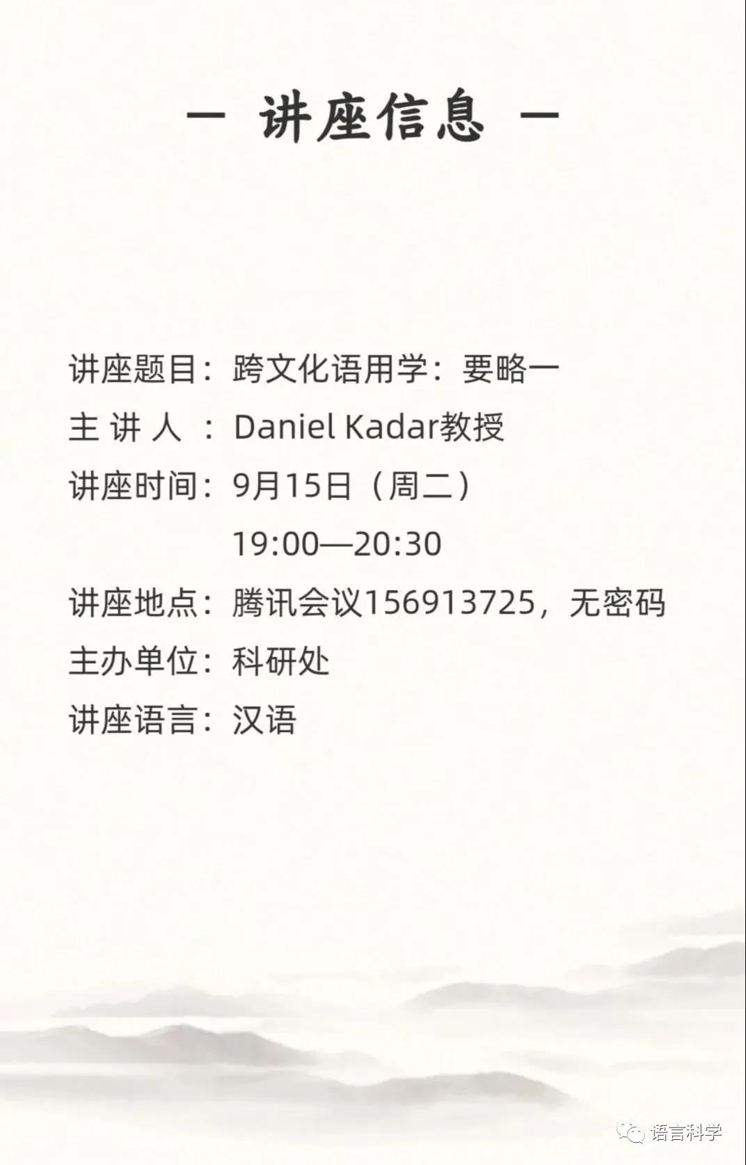 主讲嘉宾:Daniel Kadar 教授