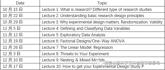 讲座时间:2020年10月15日至12月17日