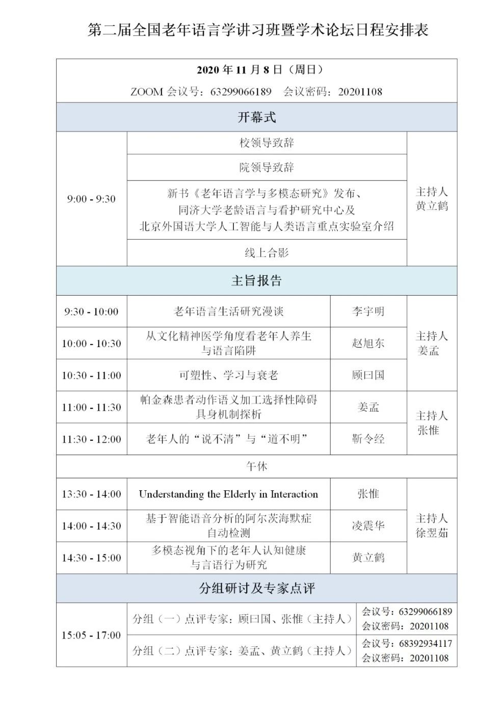 日程公布!第二届全国老年语言学讲习班暨学术论坛