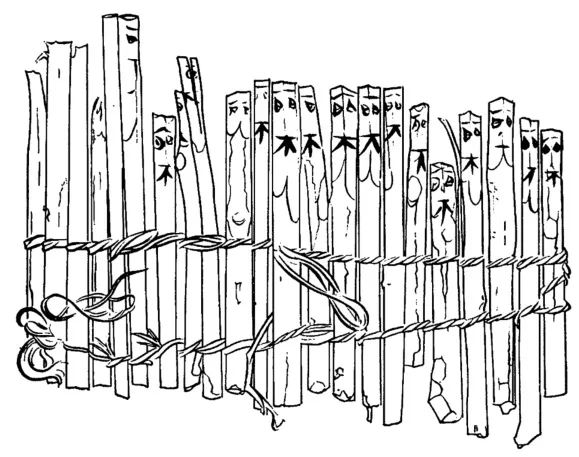 鬾:禹步三,取桃东枝,中别为□□□之绘,而笄两门户上各一。