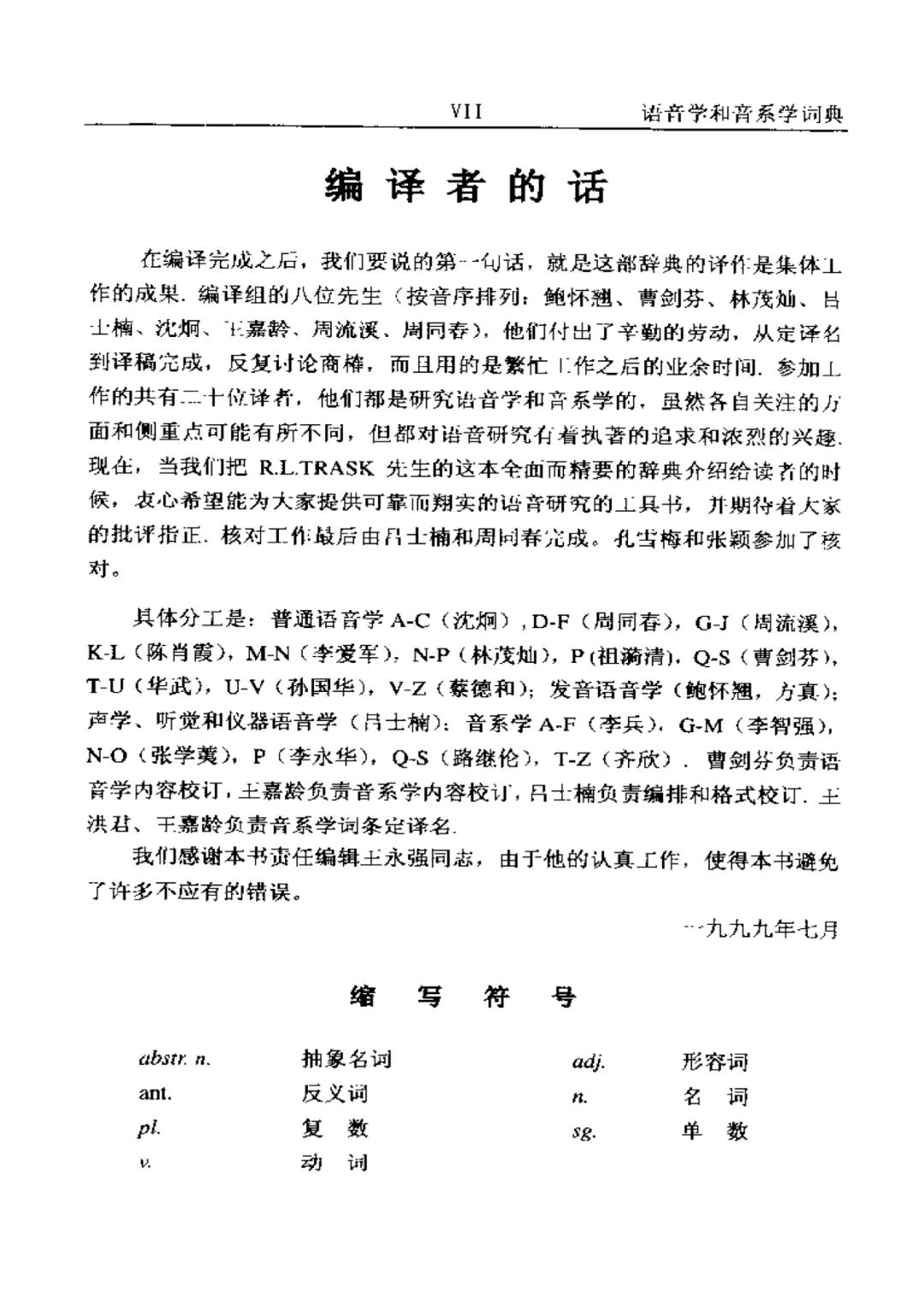 因为这一本词典是专攻语音学和音系学的第一本词典(据小编所知),因此意义非常重大,国内也于2000年出版了该词典的译文版本,由国内众多知名语音学家共同翻译而成,名为《语音学与音系学词典》,某种意义上来讲,奠定了这些术语的“官方”准确译名。对于刚入门语音学和音系学的朋友而言,在写英文摘要或论文的时候,这样一本词典可以帮助你很快锁定术语的对应的英文。