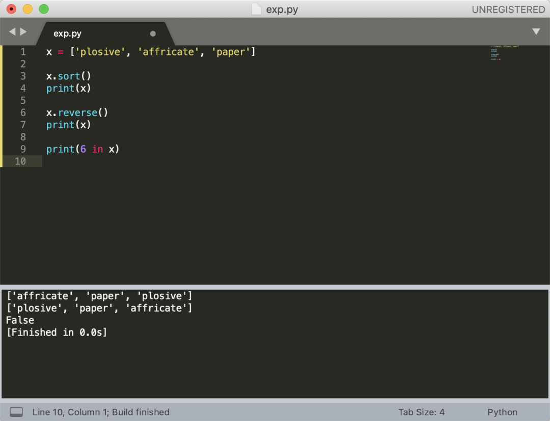 除了上面的增删元素,我们还可以对列表的元素进行整理,使用sort( )函数可以按照大小或字母排序整理列表元素,使用reverse( )函数可以把列表当前顺序“反转”。最后,我们还可以使用in来检测列表中是否包含某元素。这些就是列表的基本操作了。