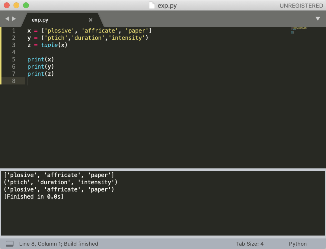 x = ['plosive', 'affricate', 'paper']x.append('nasal')print(x)x.insert(1,'fricatives')print(x)x.pop(3)print(x)