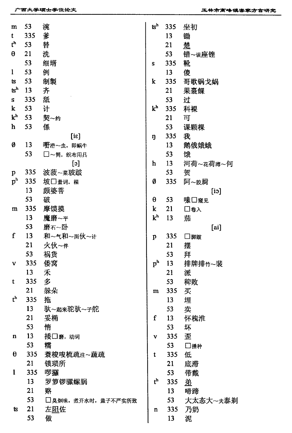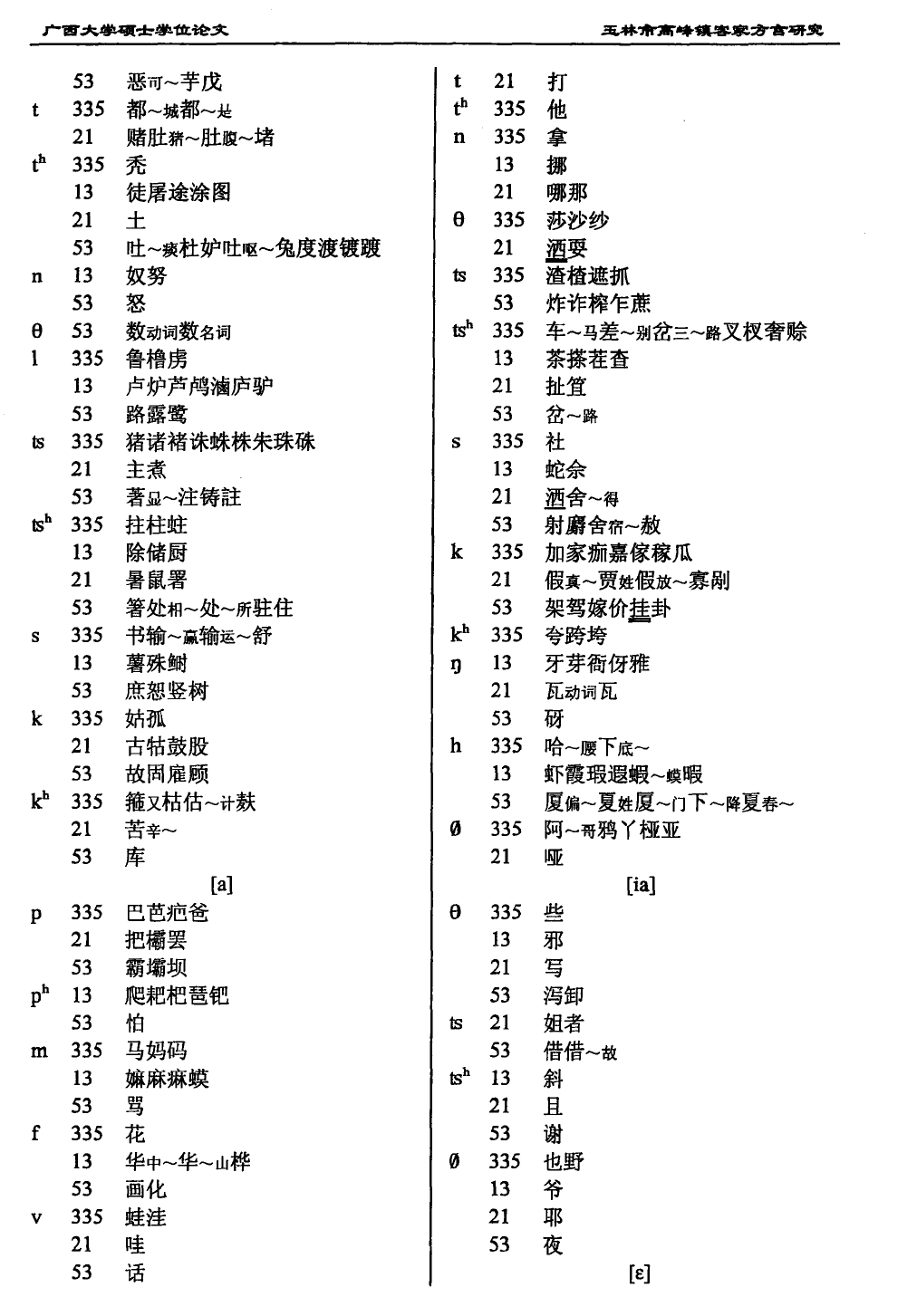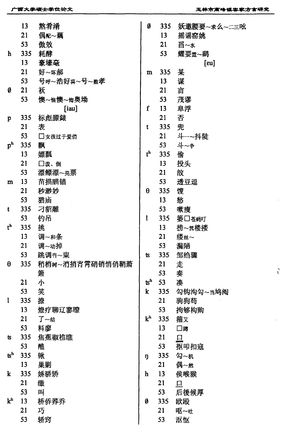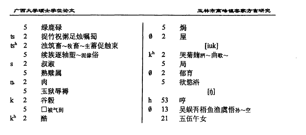 方言音系|玉林市高峰镇客家方言音系与同音字汇