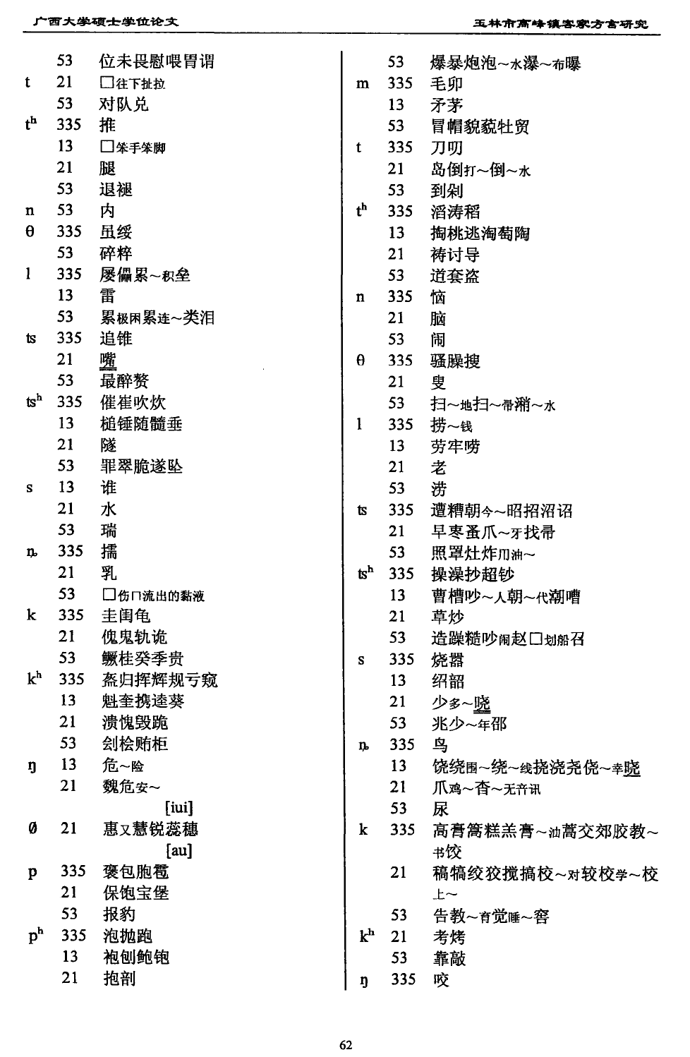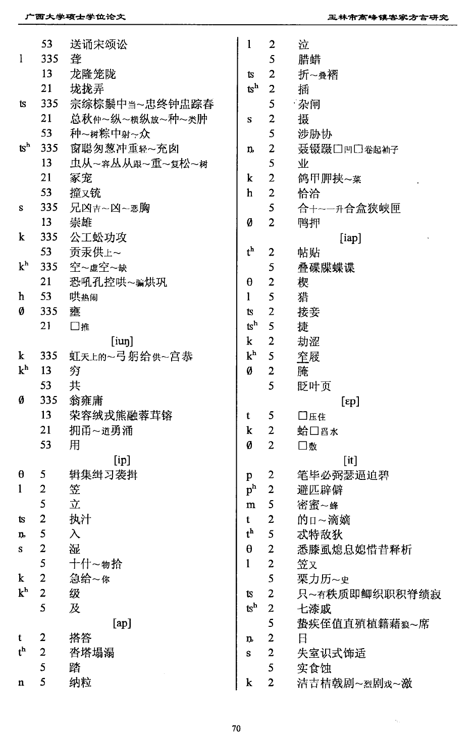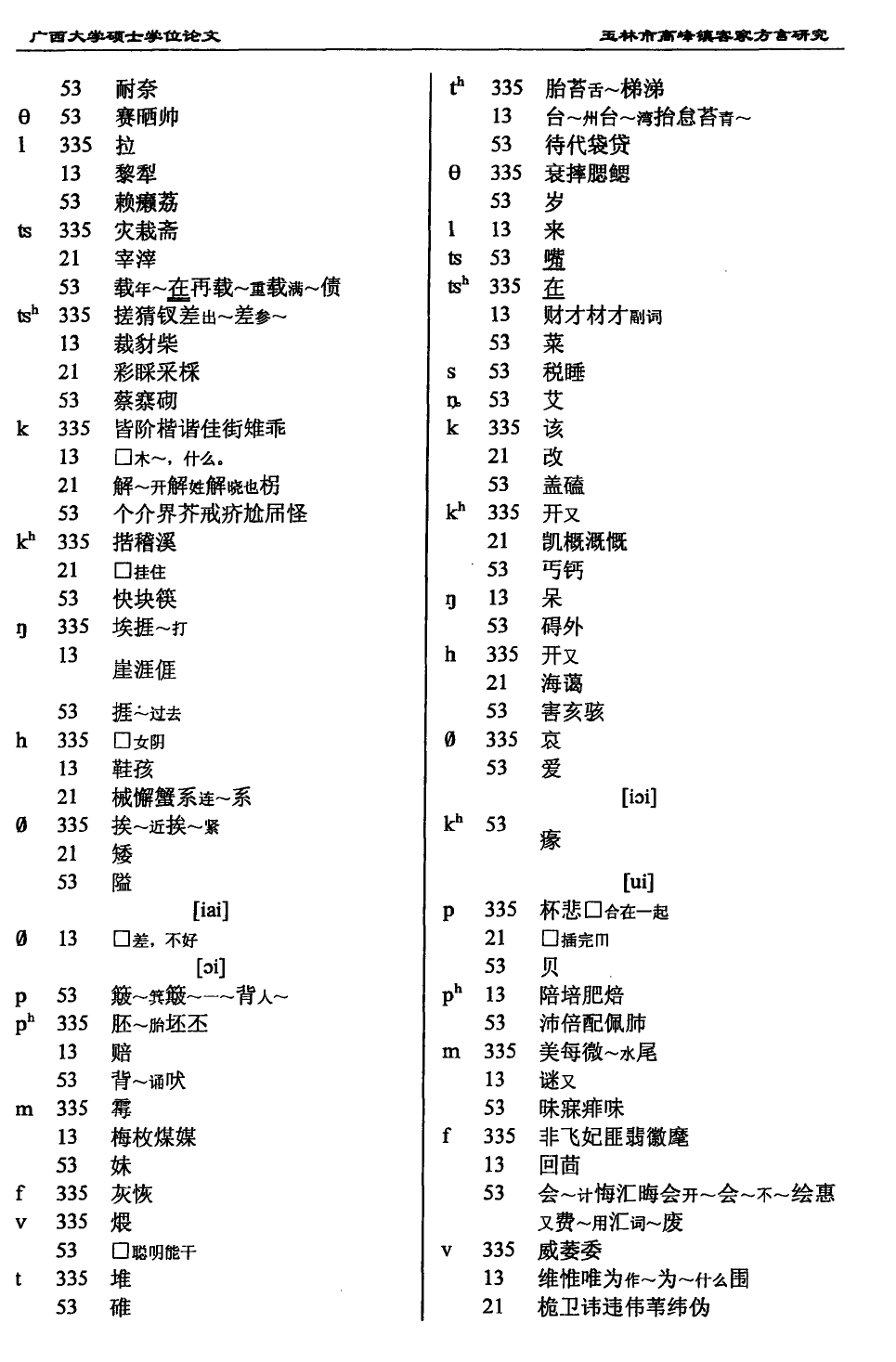 方言音系|玉林市高峰镇客家方言音系与同音字汇