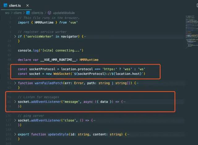 import "/vite/hmr",浏览器又会去dev server请求hmr..., 实际就是返回了源码中的client.ts文件