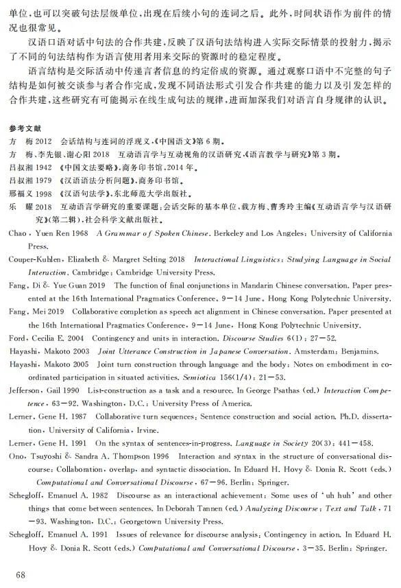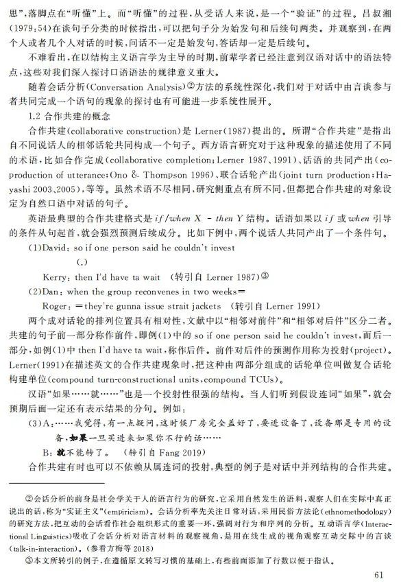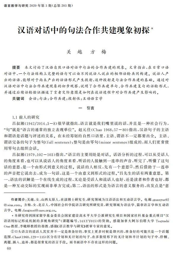 关越 方梅 | 汉语对话中的句法合作共建现象初探