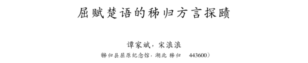 屈赋楚语的秭归方言探赜
