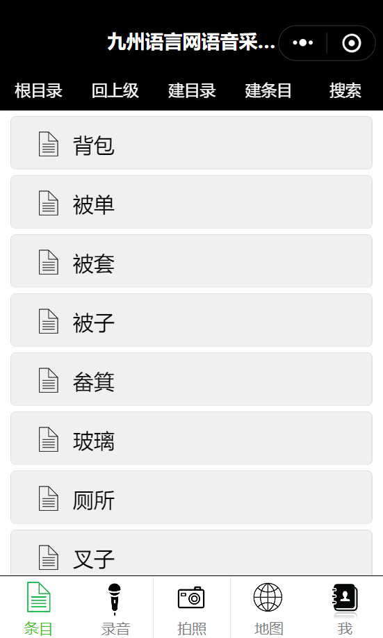 只有二级及以上用户才可以在“我的目录”下自由新建和管理自己的目录与条目,其功能类似于电脑端的文件资源管理器,用户可以新建、修改、删除和移动自己的目录和条目,可设置和修改“目录或条目”的标题及备注说明信息,标题内容通常为录音内容。系统支持五级子目录,每个目录下可包含100个具体条目或子目录。二级用户不仅可以给自己新建的条目进行录音,还可以给自己新建的条目上传图片和短视频(时长小于1分钟)。