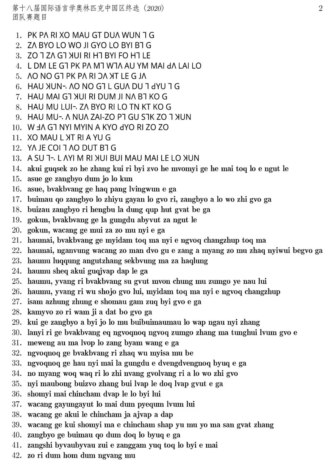 IOL比赛分为团体赛和个人赛。每年的比赛为团体和个人分别设置题目,最终会角逐出优秀个人、优秀参赛队伍以及最佳解决方案奖。IOL比赛的每道题目都是以全世界范围内业已经过调查的某语种的语言片段为材料,为参赛者展示不同语言编码方式的差异性,并给出足量的已知信息,要求参赛者据此探求背后的规则。国际奥林匹克语言竞赛面向的是全世界的高中学生,赛题在命制的时候都预设参赛者不具备语言学专业知识,因为解题的线索都会被埋藏在语言材料的外在形式中。参赛者需要施展敏锐的洞察力去挖掘材料中的线索,还须发挥丰富的想象力去推测其之所以如此的原因,最后再经过严密的推理而归纳出规则。