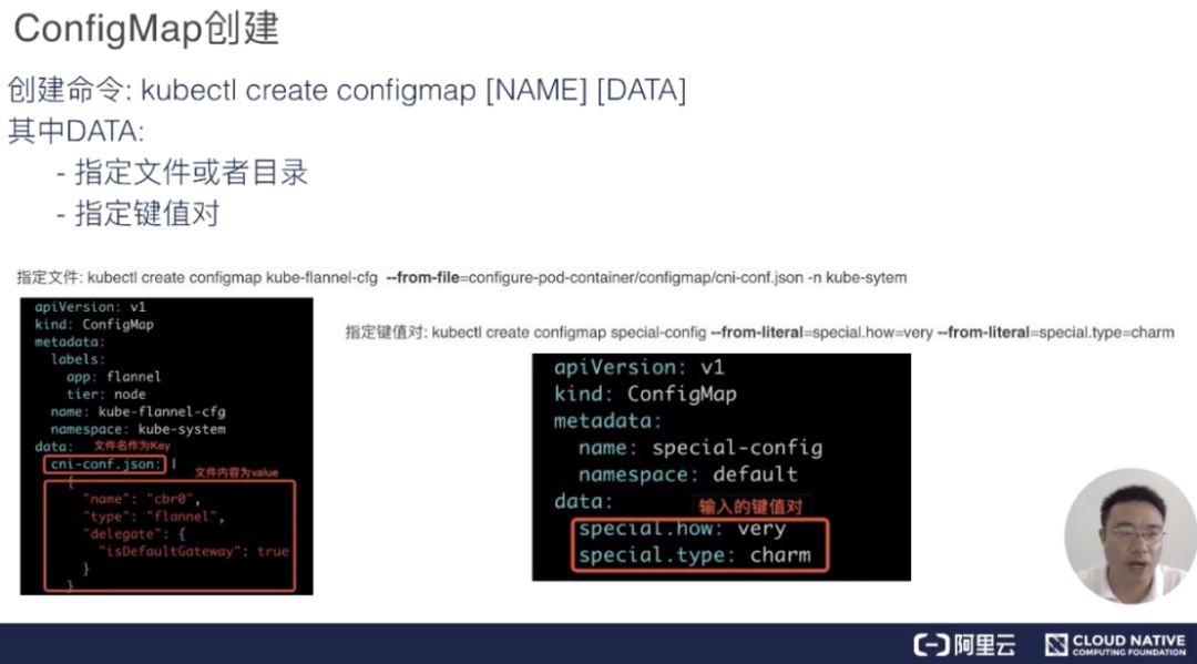 最后一个是通过 volume 挂载的方式直接挂到容器的某一个目录下面去。上面的例子是把 special-config 这个 ConfigMap 里面的内容挂到容器里面的 /etc/config 目录下,这个也是使用的一种方式。