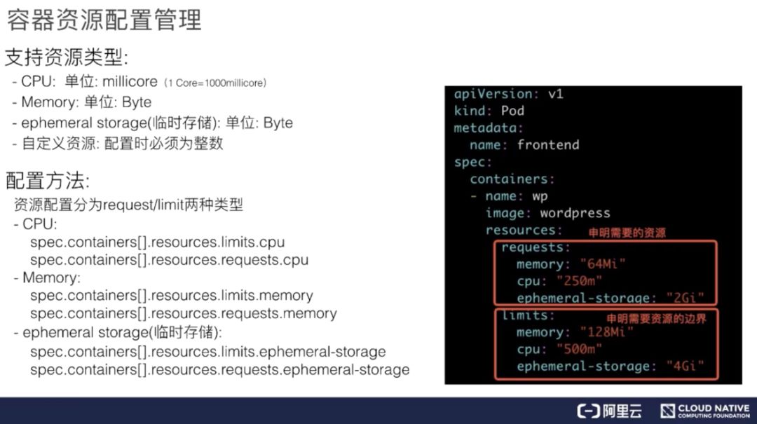 容器资源和安全:首先介绍了容器常见资源类型 (CPU/Memory) 的配置,然后对 Pod 服务质量分类进行详细的介绍。同时对 SecurityContext 有效层级和权限配置项进行简要说明;