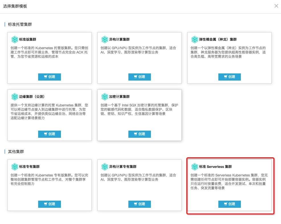 在【容器服务控制台】创建标准 Serverless K8s 集群