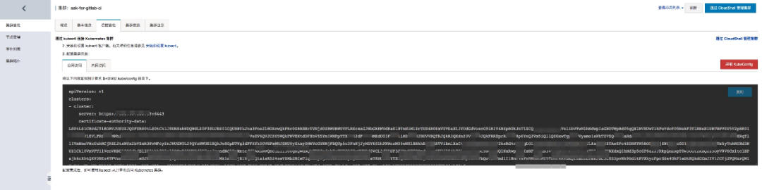 集群创建完成后,基本信息中有 API server 公网链接地址