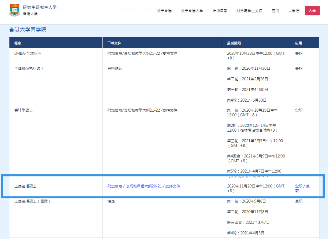 *港大牙医学院、李嘉诚医学院、教育学院部分专业尚未公布或确认申请轮次时间。