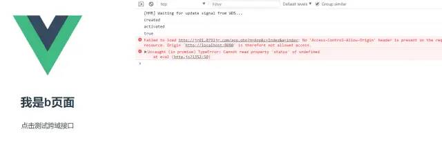 可以看到,此时我们点击获取数据,浏览器提示我们跨域了。所以我们访问不到数据。