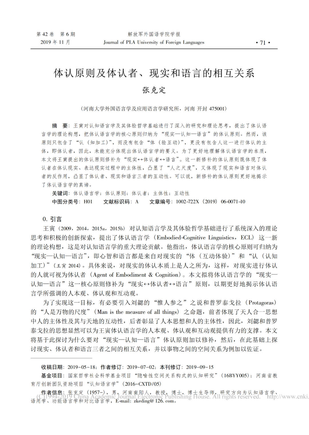 张克定,河南省特聘教授,河南大学外语学院二级教授,博士生导师,中国逻辑学会语用学专业委员会副会长,中国英汉语比较研究会功能语言学专业委员会、认知语言学专业委员会常务理事。主要研究方向为语用学、认知语言学、功能语言学和对比语言学。