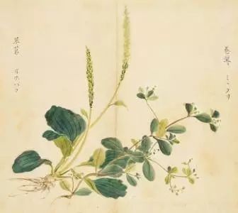 今车前草,大叶长穗,好生道边。江东呼为虾蟆衣。